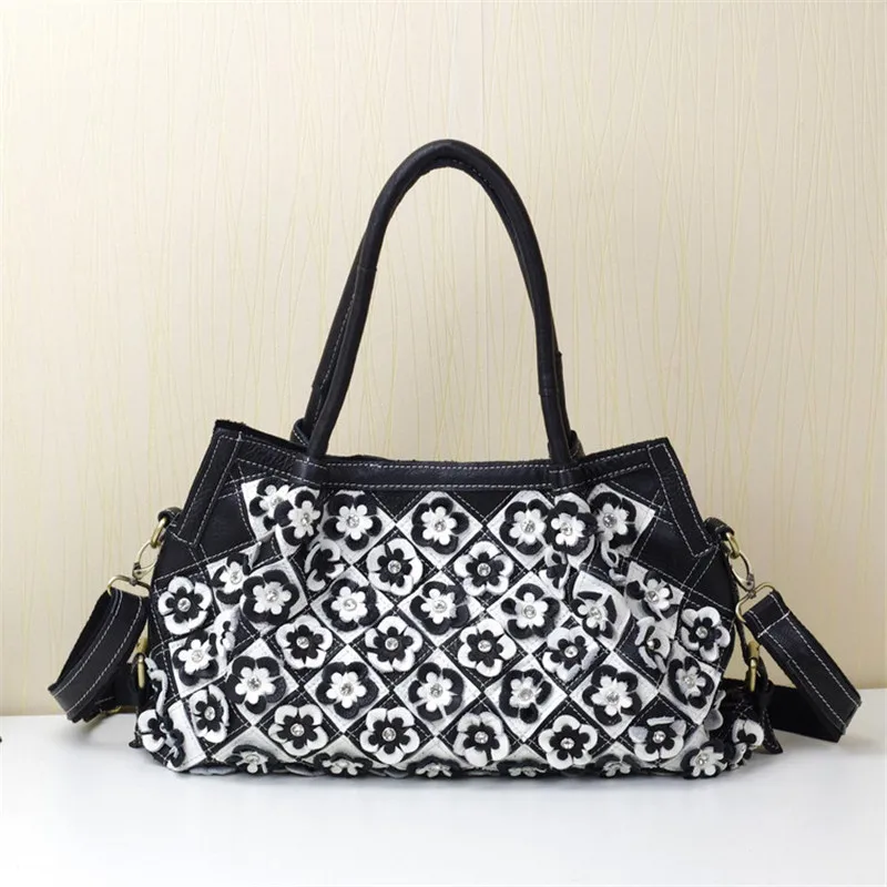найти лучшие цены на 2016 новая мода Настоящее 100% Подлинные Натуральная Кожа Лоскутное Сумки цветы Женщины Сумка Кошелек Красочные большие сумки на AliExpress.